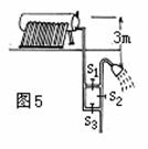 小华、小明两家住在一栋楼的同一单元内,小华家在3楼,小明家在顶层5楼。两家在五楼楼顶屋面上的同一高度,装有如图5所示的同一品牌、同一规格的太阳能热水器各一台,室内装有同种淋浴头(俗称喷头)。当他们将阀门S1打开到最大位置(S2、S3关闭)时,分别拍摄了淋浴头喷水场景的照片两张,如图6、7(图6喷水的压强小,使用不满意)