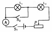如图所示电路,灯L1、L2的额定电压分别为2V、10V,S1闭合、S2断开、滑动变阻器滑片置于中点位置时,两灯均正常发光。S2闭合后,移动变阻器滑片使L2仍正常发光时,下列关于滑片位置和电流表示数的说法正确的是
