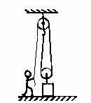 (6分)一建筑工人,使用了如图所示的装置将建筑材料提上高处,已知建筑材料的质量为80kg,人对绳的拉力为500N,重物在拉力的作用下1min匀速上升了5m,绳重和摩擦不计.G取10N/kg,求: