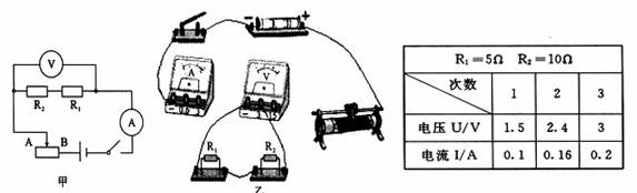 30.(6分)在学习“串联电阻的总电阻与各串联电阻之间关系”的时候,小强和小刚利用滑动变阻器(铭牌上标有“50Ω 1A”)、两个定值电阻(5Ω和10Ω)、电压表、电源等器材对此进行了探究.他们设计了如图甲所示的电路图.