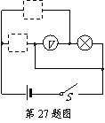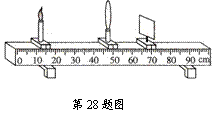 28.如图所示,凸透镜焦距为20cm.保持透镜位置不变,当蜡烛在15cm刻度线处时,为了在光屏的中心找到像,应调整光屏的高度,并将光屏向 ▲ 方向移动(选填“远离透镜”或“靠近透镜”),才能得到清晰的 ▲ (填像的大小和性质).