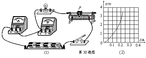 30.小明做测定“小灯泡的电功率”实验时,所用器材有电压为6V的电源,额定电压为2.5V的小灯泡,以及符合实验要求的滑动变阻器、电表、开关和导线.图(1)是小明没有连接完的实物电路.