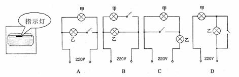 灭,指示灯会发出微弱光,以便夜间显示开关的位置.根据这种按键开关的控制特性,能正确表示照明灯(甲)和指示灯(乙)连接方式的电路图是图中的