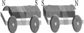 如右图所示,将分别载有一根条形磁铁的两辆小车同时释放后,小车向相反方向运动,最后静止。此现象说明的物理知识有:同名磁极相互排斥,物体间力的作用是 ___▲___ 的,力可以改变物体的 ___▲___ 状态,磁极间作用力的大小随磁极间距离的增大而减小。