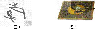 2、如图1从甲骨文“殸 ”(古代打击乐器)字的结构可知,古人很早便知道声音与 有关。如图2司南是把天然磁石琢成勺子的形状,放在一个水平光滑的“地盘”上制成的,静止时它的长柄指南偏东,说明 。