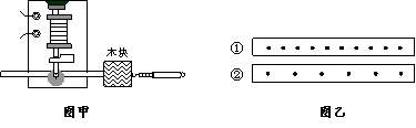12.如图甲所示,纸带穿过打点计时器(每隔一定时间在纸带上打下一个点)与一木块左端相连,木块在弹簧测力计作用下沿水平桌面(纸面)向右运动时,就能在纸带上打出一系列的点。图乙中①和②是打点计时器先后打出的两条纸带,与其对应的测力计的示数分别为F1、F2,木块运动的速度分别为v1、v2,那么