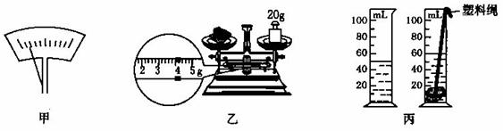 (2) 用调节好的天平测石块的质量,所用砝码和游码的位置如图乙所示,则石块的质量是________g。再用量筒测出石块的体积如图丙所示,则石块的密度是___________g/cm3。
