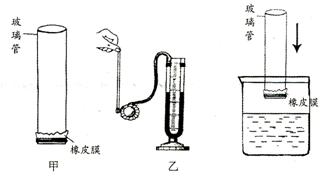 在研究液体压强的实验中,老师出示了如图甲所示的装置,并向装置中加人一定量的水,此时你观察到的现象