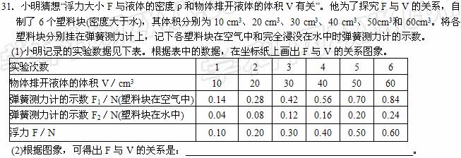 (3)通过分析图象,得出当V为75cm3时所对应的浮力F=_________N。