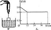 34.用一弹簧测力计挂着一实心圆柱体,圆柱体的底面刚好与水面接触(未浸入水)如图甲,然后将其逐渐浸入水中,如图乙是弹簧测力计示数随圓柱体逐渐浸入水中的深度变化情况,求:⑴圆柱体受的最大浮力;(2)圆柱体的密度。(g=10N/kg)