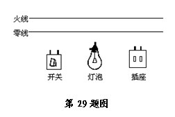 29.请在如图所示的家庭电路中,以笔画线代替导线,将一个两孔插座和一个带按钮开关的螺口灯泡接入电路.