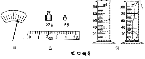 (3)用天平称矿石的质量,把矿石放在天平的左盘.天平平衡时.放在右盘中的砝码和游码在标尺上的位置如图乙所示;量筒量出矿石的体积如图丙所示,由此可知,矿石的密度ρ= kg/m3.