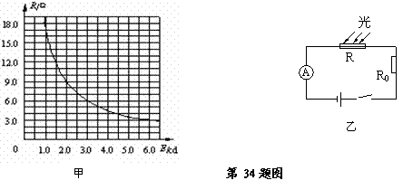 34.光敏电阻的阻值随光照射的强弱而改变.“光强”表示光的强弱程度的物理量,照射光越强,光强越大,光强符号用 E 表示,国际单位为坎德拉(cd).实验测得光敏电阻的阻值 R 与光强E间的关系如图甲所示,根据图象解答下列问题: