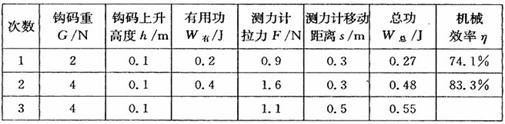 (2)第3次实验中所做的有用功是 ▲ J,机械效率是____▲__。