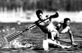 皮划艇是我国的奥运优势项目之一。比赛中,运动员一手支撑住浆柄的末端视为支点,另一手用力划桨。