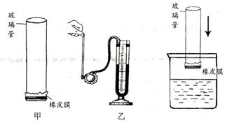 在研究液体压强的实验中,老师出示了如图甲所示的装置,并向装置中加入一定量的水,此时你观察到的现象是 _________,这说明液体对容器底有压强。稍后老师拿出如图乙的压强计准备探究液体内部是否存在压强,而小明认为没必要,利用图里装置即可。于是小明将图甲装置缓慢地浸入水中,你将观察到 ___________。若要探究液体内部压强的特点,哪个装置更适合,并说明理由