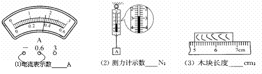 (3分)观察如图所示中的三幅图,将测量结果或示数写在相应空格处