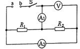 如右图所示电路,电阻R1标有“6Ω lA”,R2标有“3Ω 1.2A”,电流表A1、A2的量程均为0-3A,电压表量程0-15V,在a、b间接人电压可调的直流电源.闭合开关s后,为保证R1、R2均不损坏,则允许加的电源电压和通过电流表A1的电流不得超过( )