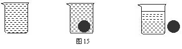 如图15所示,一只烧杯盛满水时,称得其总质量为400g;放入一金属球溢出一部分水后,称得其总质量为900g;取出金属球后,称得烧杯和剩余水的质量为200g。求:此金属球的密度。