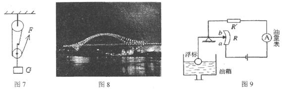 13.如图7所示,动滑轮重30N,物体重270N,若不计绳重和摩擦,在拉力