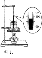 (1)在某次实验中,烧杯中的水正在沸腾,温度计的示数如图11所示,此时水的温度为 ℃;继续对水加热,水的温度将 (填“不断升高”或“不断降低”或“不变”)。(2分)