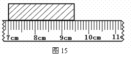 (5)某同学用一把断裂的刻度尺测量物体的长度,如图15,则此物体长度为 cm。(1分)