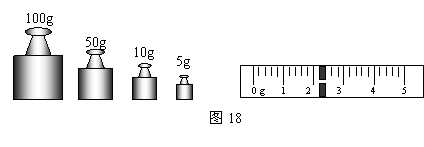 (1)用已调好的天平测量大矿石的质量。当天平平衡时,右盘中砝码和游码的位置如图18所示,矿石的质量是 g。(2分)