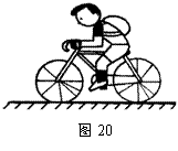 如图20所示,小华同学骑着一辆自行车在平直公路上前进了1500m,所用时间为3min. 若小华和自行车总质量为80kg,每个车胎与地面的接触面积为20cm2.请你解答: