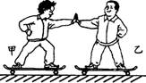 质量相等的甲、乙两同学站在滑板上,在旱冰场上相对而立,如果甲用60N的力推乙,如图所示。以下分析正确的是( )
