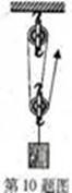 9. 如右图所示,某人站在高处用100N的拉力把重240N的物体提高1m,则