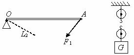 21.如图,杠杆OA在力F1、F2的作用下处于静止,L2是力F2的力臂,在图中画出F1的力臂L1和力F2.