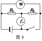 20.如图9所示,若甲、乙两表为电压表,当S闭合时,两表示数之比为U甲︰U乙=5︰2。若甲、乙两表为电流表,当S断开时,两表示数之比为I甲︰I乙= ,此时R1和R2消耗的功率之比P1︰P2= 。