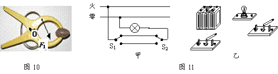 21.用夹子夹住物体时(如图10),画出动力臂和阻力的方向。