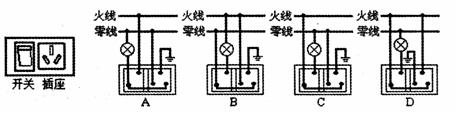 12.家庭电路中要安装“一开三孔”开关(即一个开关和一个三孔插座连在一起),要求:插座能单独使用,开关能控制电灯,符合安全用电原则.从实物正面观察,下图的几种连线中正确的是