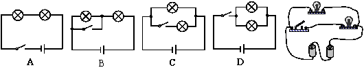 图2甲中的四个电路与图2乙实物图对应的是 ( )