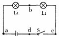 如图5所示,闭合开关S时,灯泡L1、L2都不亮。用一段导线的两端接触a、b两点时,两灯都不亮;接触b、c两点时,两灯都不亮;接触C、d两点时,两灯都亮。则( )