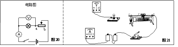 (1)实验电路图如图20所示,请完成图21中的实物连接;