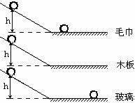 如图25所示,让小球从同一斜面的同一高度处下滑,使它们在不同的物体铺垫的水平面上运动.
