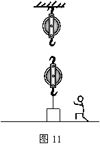 19.如图11所示,人站在地面上,通过这个滑轮组把重物G提升到楼上,请你画出这个滑轮组最省力的绕线方法。