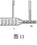 21.科学知识告诉我们:气体的流速越快,压强越小。为了探究液体压强和流速的关系,我们做了如下实验:如图13所示,根据实验现象,你得出的结论是:_______________________________。下列四种情形中,哪种情形能够运用上述的实验规律进行解释( )。