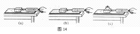 22.图14是某小组研究“摩擦力的大小与哪些因素有关”的实验示意图,