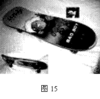 23.滑板运动已经成为都市青年最流行、最持久的时尚运动。一块滑板是由板面、滑板支架(滑板桥)和四只滑板轮等部分组成,总质量约为5kg,如图15所示。其中板面是由一块质量约为4kg,体积约为5×10-3m3的复合材料组成。求:
