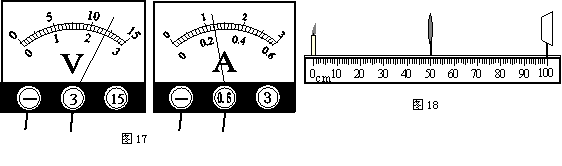 30.在“用电压表和电流表测电阻”的实验中,小红同学连接完实验电路,闭合开关,此时电压表和电流表的指针位置分别如图17所示,则电压表的示数是 V,电流表的示数