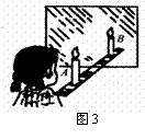 某同学在探究平面镜特点实验时,将一块玻璃板竖直架在一直尺的上面,再取两段等长蜡烛A和B一前一后竖放在直尺上,点燃玻璃板前的蜡烛A,用眼睛进行观察,如图3所示: