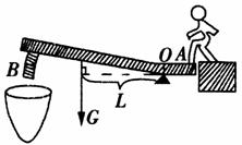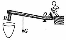 解析 此题中的动力是人的脚施加的往下的力,阻力就是杠杆本身的重力,当人在A端踩下后,B端在自身重力作用下下落。重力G的力臂就是从支点O到重力作用线的距离,力臂画法如图,很明显,人施加的力的动力臂小于阻力臂L,所以是一个费力杠杆。