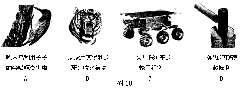 12.图10中,采用增大受力面积的方法减小压强的事例是 [ ]