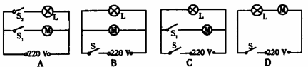 13.抽油烟机装有照明灯和排气扇.使用中,有时需要它们单独工作,有时需要它们同时工作.如图11所示的四个电路中,你认为符合上述要求的是 [ ]