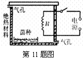 (3)为保证菌种的培养,箱内发热功率应为12W。在不改变电源电压和原电热丝的情况下,需在箱内串联一段多大阻值的电热丝?
