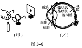 观察眼球结构图3-6(乙), 结合以上实验请你回答如下问题: