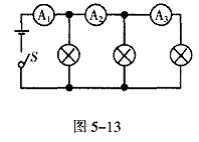11.如图5-13所示的电路,通电后,电流表A1、A2、A3的示数分别为I1、I2、I3 ,则下面各关系式中正确的是( )。